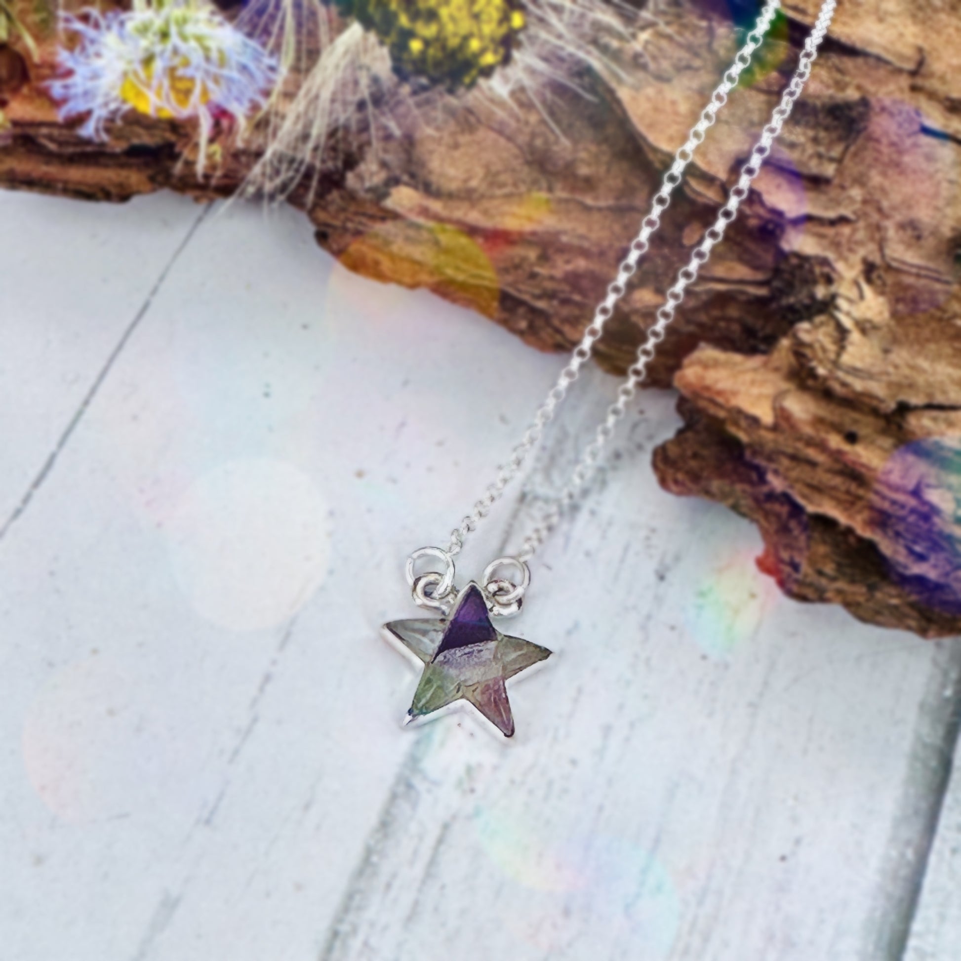 Gift good vibes with this playful Make a Wish Necklace! Crafted in sterling silver with a sparkly gemstone, this star-shaped necklace is perfect for making your wishes come true in style! With its delicate design and eye-catching vibrancy, you'll be wishing on a shining star in no time.
