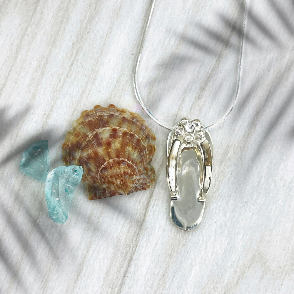 The perfect accessory for your summer wardrobe, this sterling silver flip flop pendant will add a little bit of fun to your everyday look.