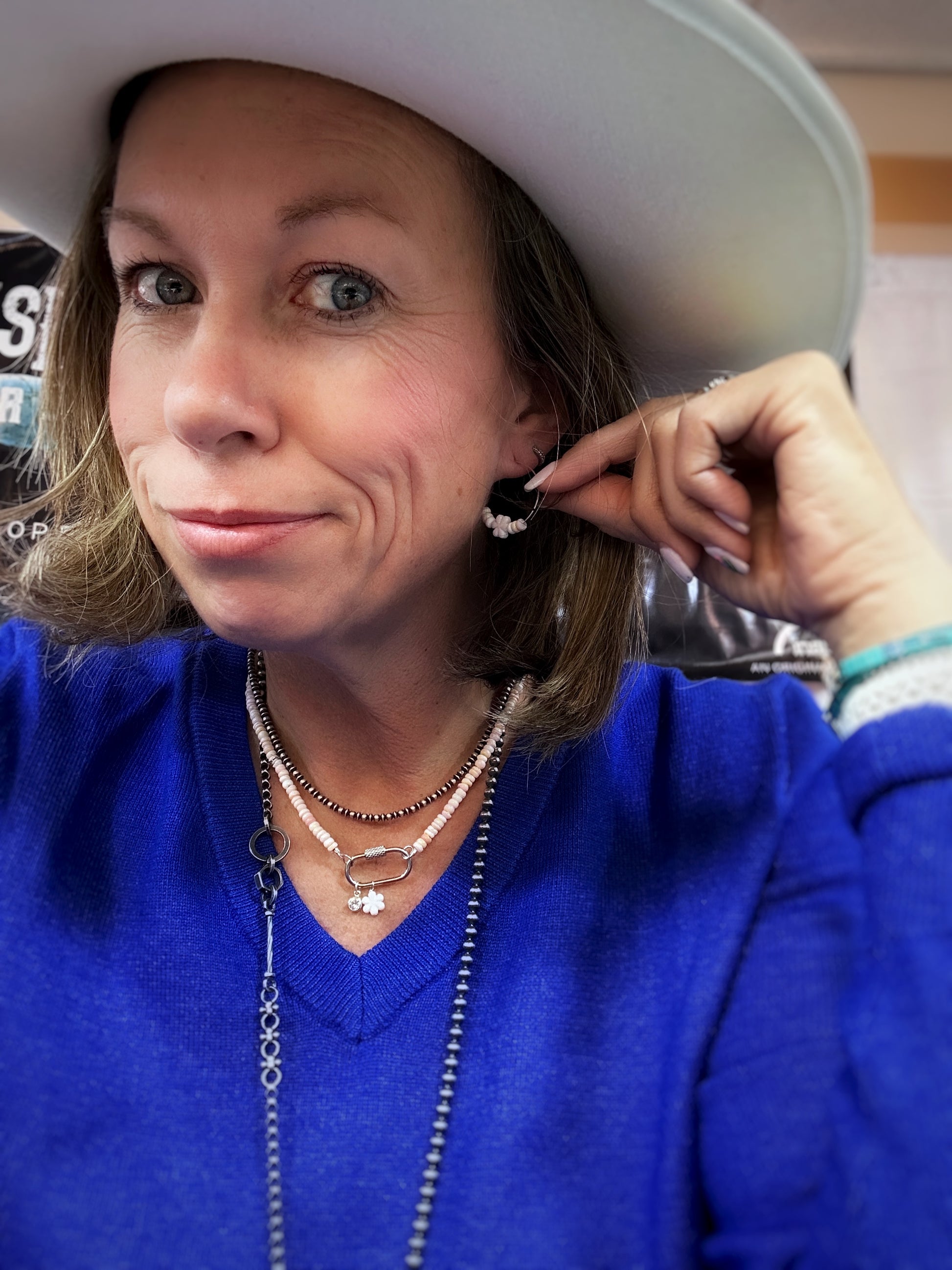 Pink conch beads all strung up, ready to clip onto a carabiner for your adventure vibes! (Feel free to toss on some extra charms to jazz it up if you’re feeling extra snazzy!)