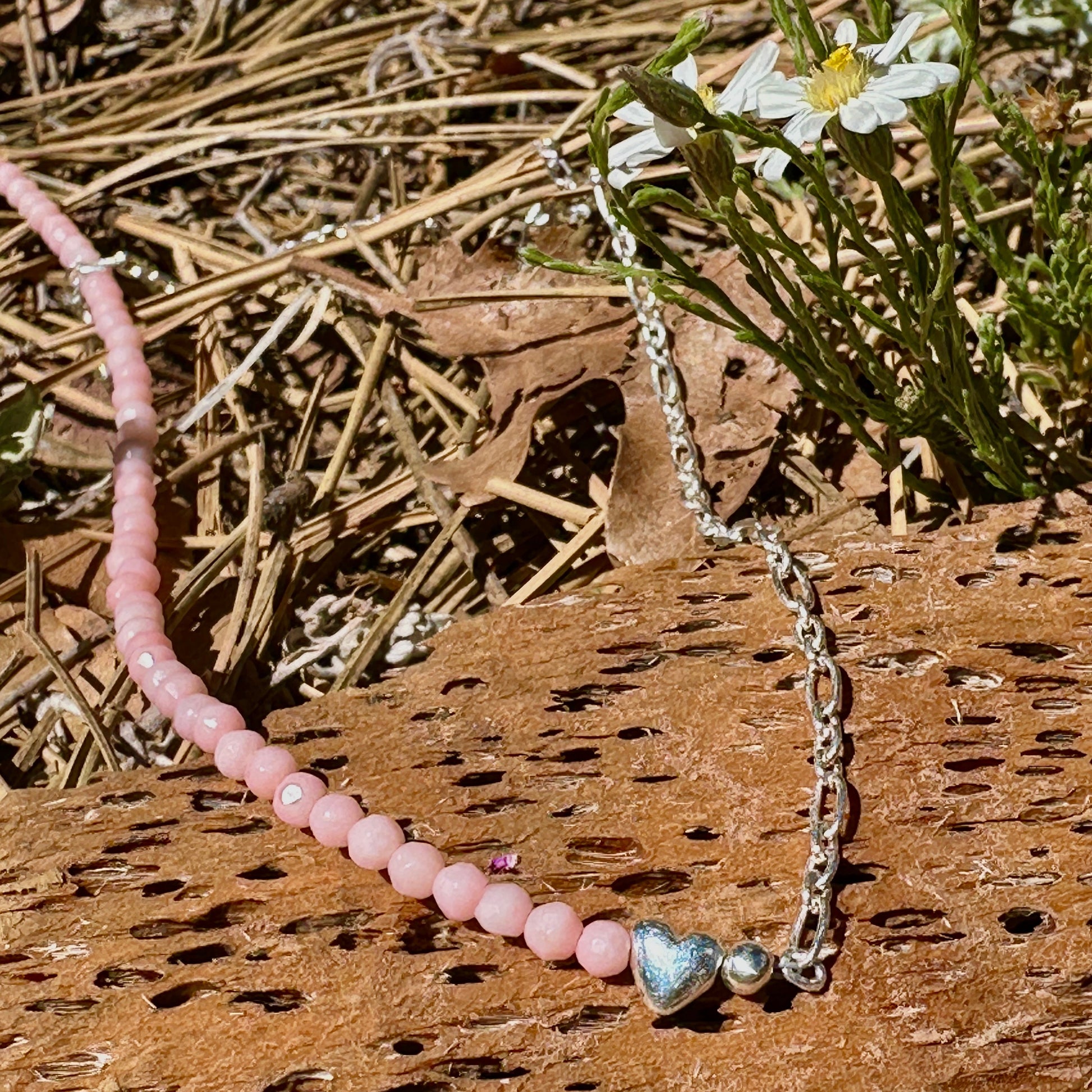 Get ready to wear your heart on your sleeve—well, technically around your neck! This charming necklace features dainty pink coral beads strung on a sterling silver chain, with a silver heart bead right in the middle (because love should always be front and center). At 16 inches, it’s the perfect pop of playful elegance for any outfit!