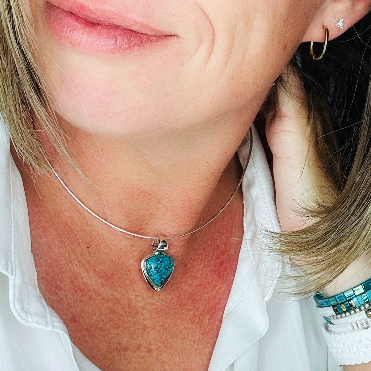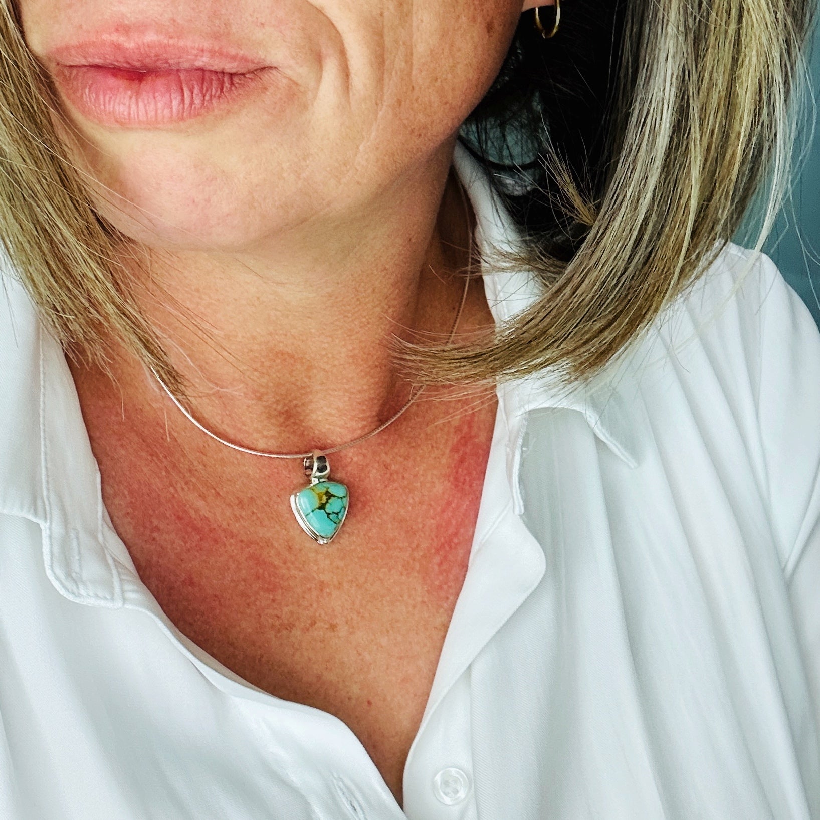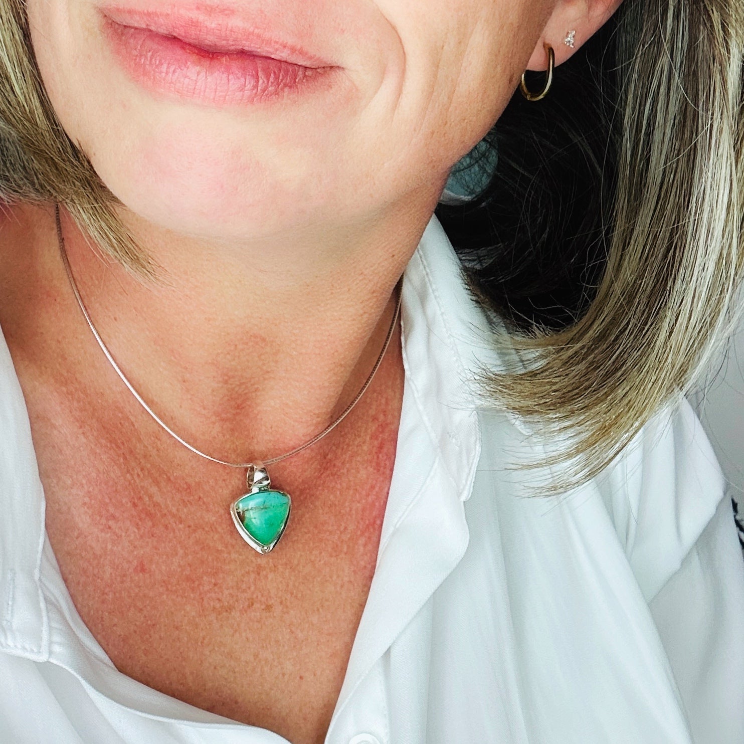 Introducing our "Warrior" pendant - a fierce and stylish addition to any outfit. Handcrafted with sterling silver and adorned with turquoise, white buffalo, rose quartz, chrysoprase, or blue tiger eye stones, this pendant is a symbol of strength and courage.