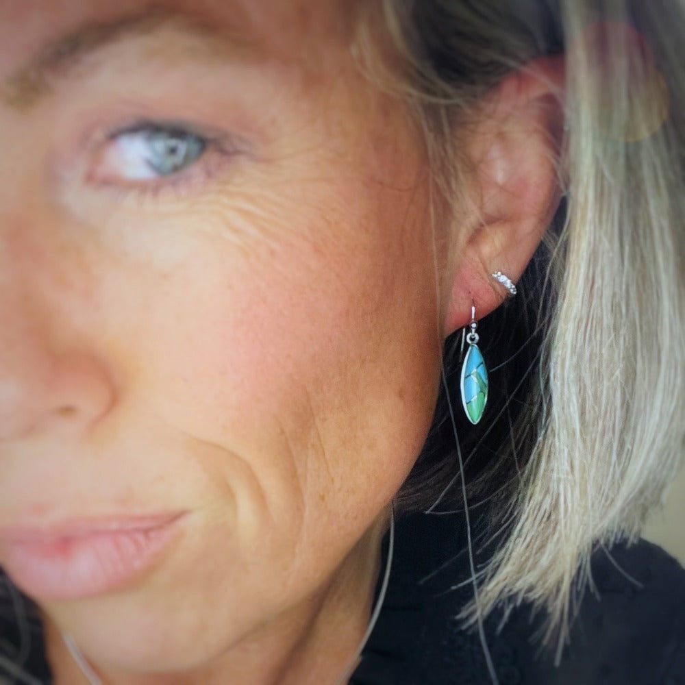 Made with fine sterling silver and turquoise mined by the Otteson family in central Nevada. Jewelry can be cleaned with a soft jewelry cleaning cloth.